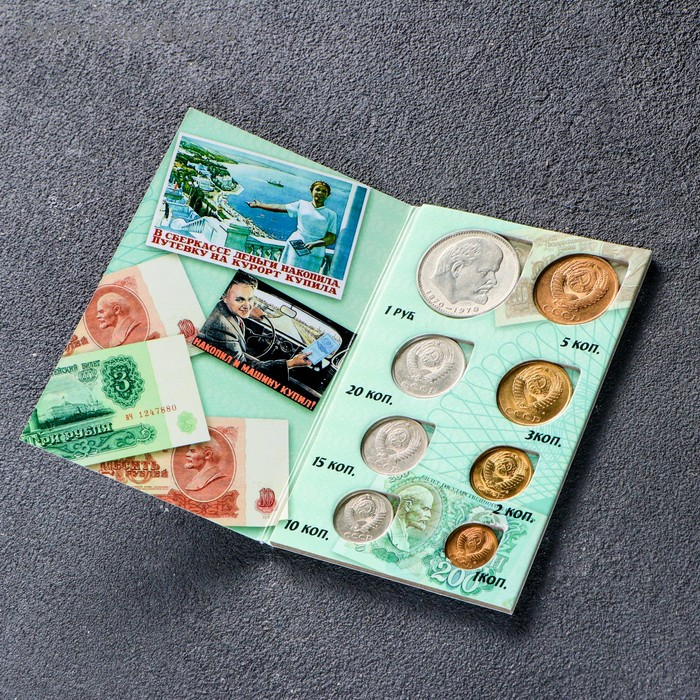 Сберкнижка с коллекционными монетами СССР (9 монет)