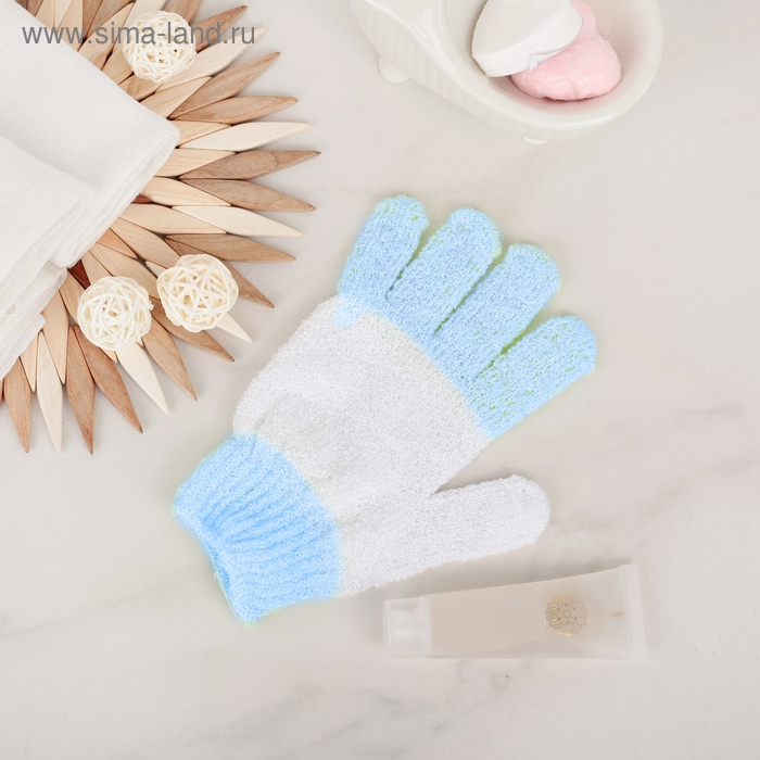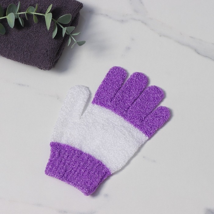 Мочалка-перчатка массажная Доляна, 14×18 см, полосатая, цвет МИКС