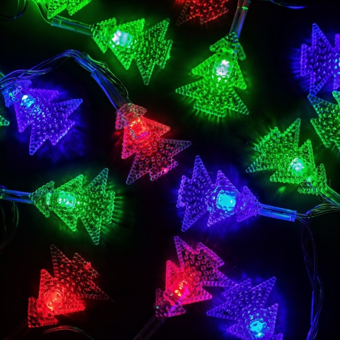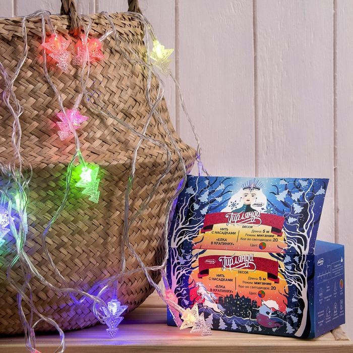 Гирлянда «Нить» 5 м с насадками «Ёлка в крапинку», IP20, прозрачная нить, 20 LED, свечение мульти (RG/RB), мигание, 220 В