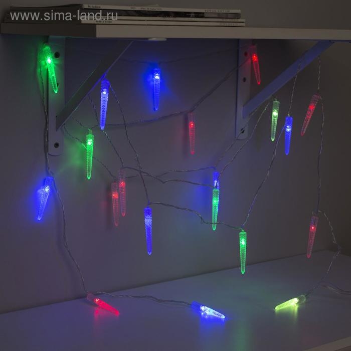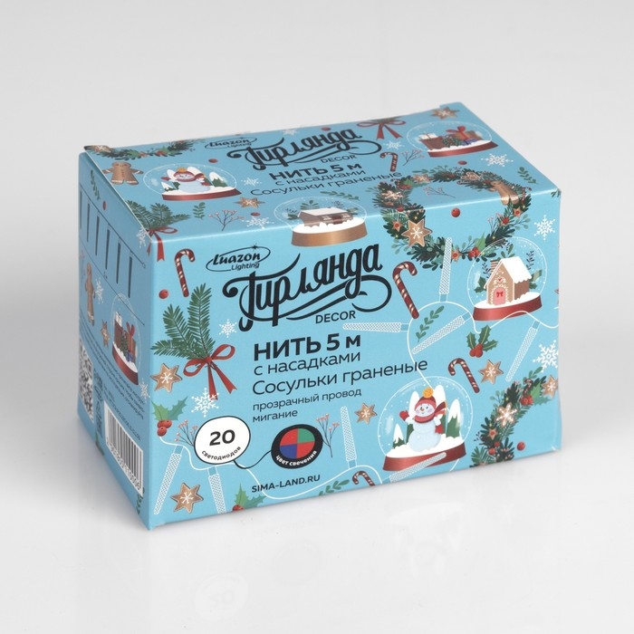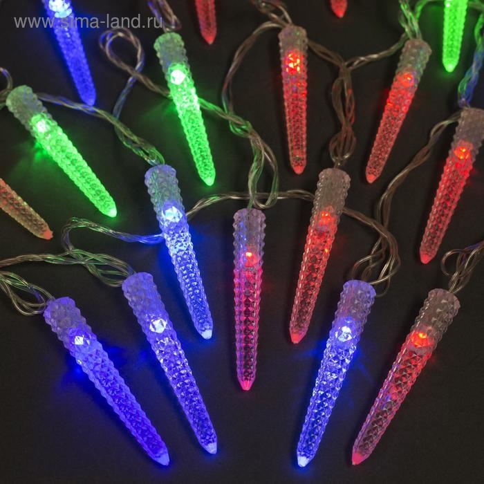 Гирлянда «Нить» 5 м с насадками «Сосульки граненые», IP20, прозрачная нить, 20 LED, свечение мульти (RG/RB), мигание, 220 В