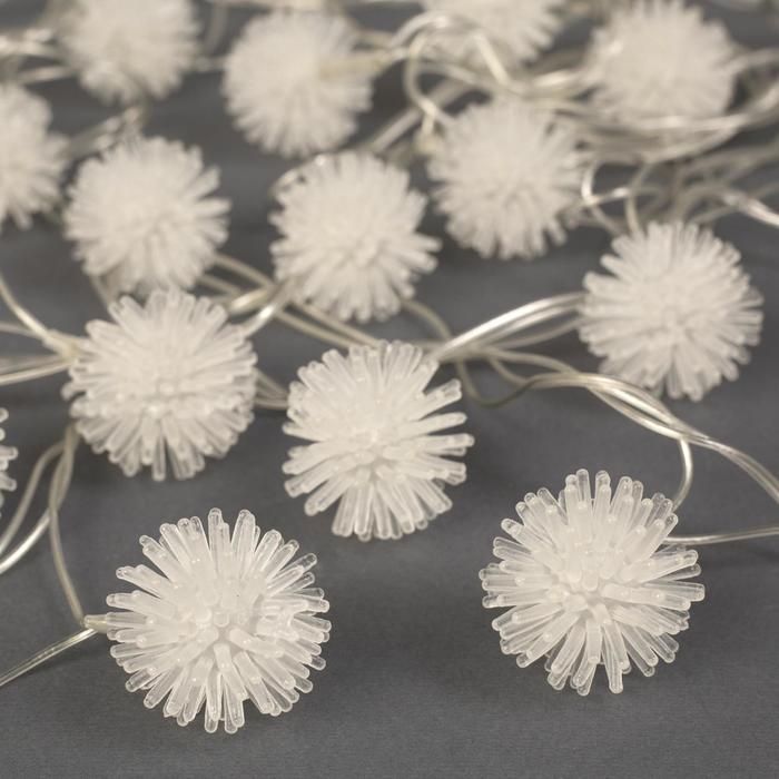 Гирлянда «Нить» 5 м с насадками «Ёжики белые», IP20, прозрачная нить, 30 LED, свечение белое, 8 режимов, 220 В
