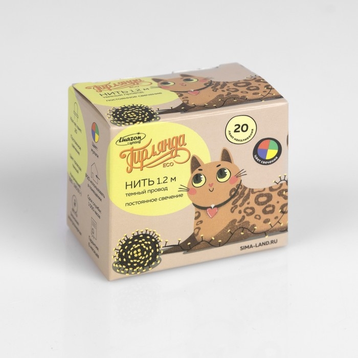 Гирлянда «Нить» 1.2 м, IP20, тёмная нить, 20 ламп, свечение мульти, 220 В