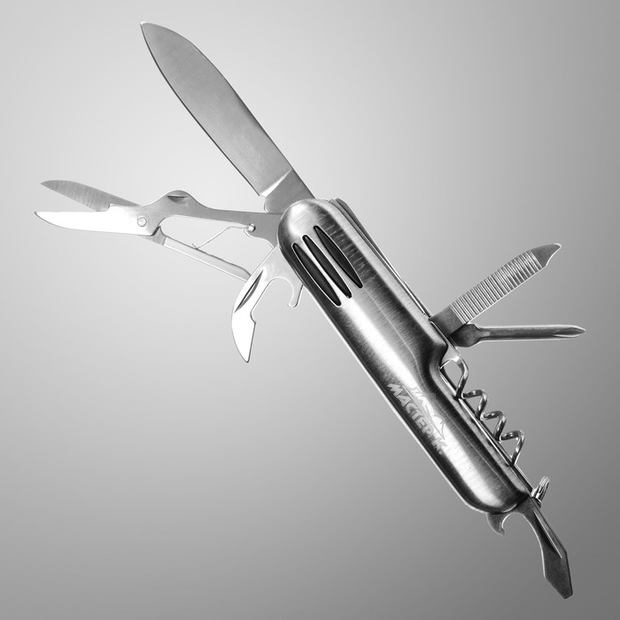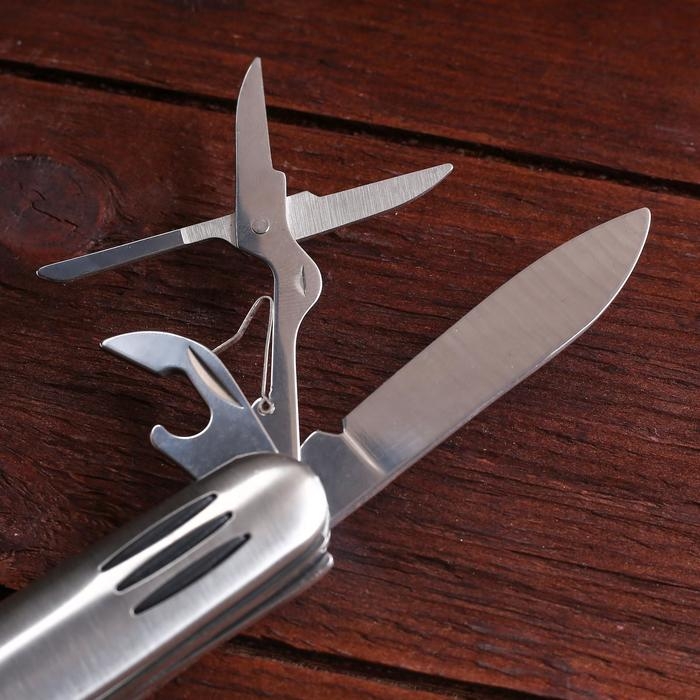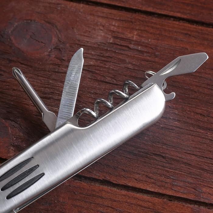 Нож швейцарский "Осирис" 8в1, на рукояти 3 полоски, хром