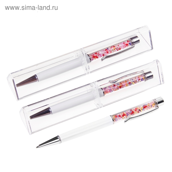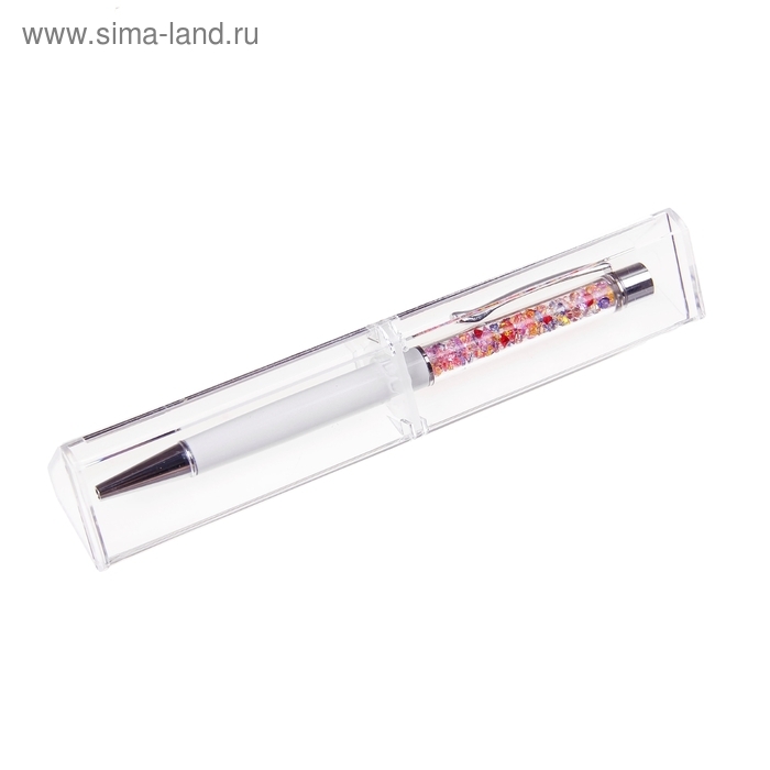 Ручка подарочная, шариковая "Стразы" в пластиковом футляре, поворотная, белая