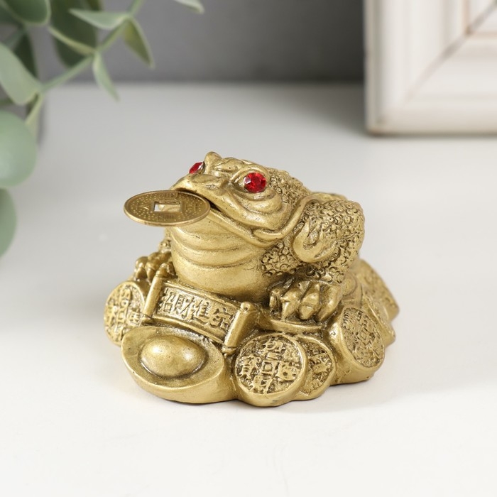 Нэцкэ бронза "Жаба на монетах, надпись, слиток" 5 х 7 х 6 см