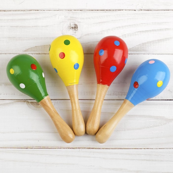 Маракас — это музыкальный инструмент с пересыпающимися шариками внутри. Малыши очень любят его, ведь он напоминает погремушку. Маракас издаёт приятный шуршащий звук и позволяет создавать короткие мелодии, под которые так весело танцевать!