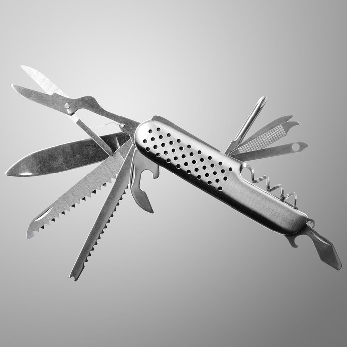Нож швейцарский "Дорожный" 12в1 рукоять перфорированная