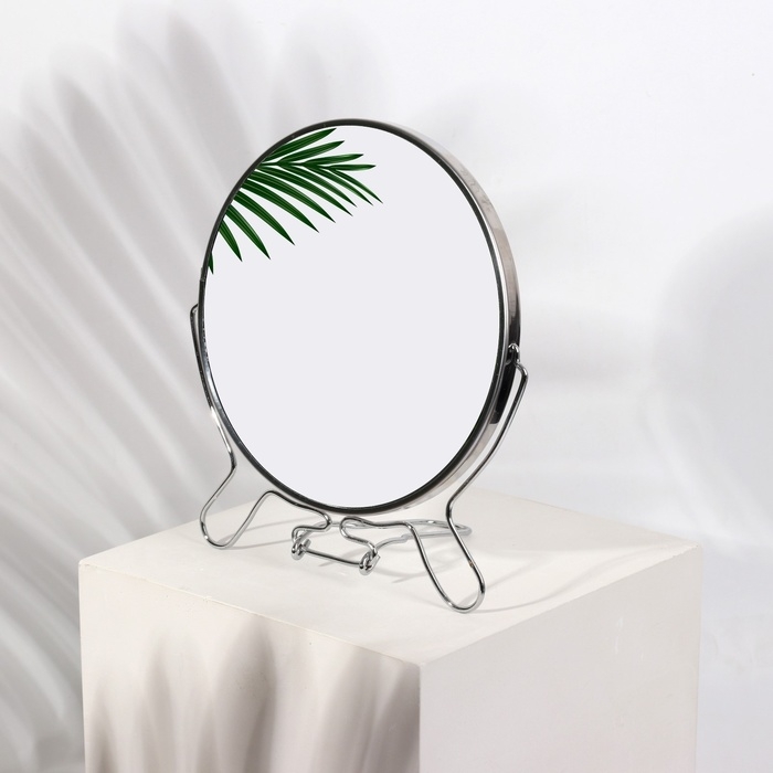 Зеркало настольное - подвесное «Круг», двустороннее, с увеличением, d зеркальной поверхности 16 см, цвет серебристый