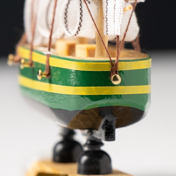 Корабль сувенирный малый «Аркхем», борта зелёные с жёлтой полосой, паруса белые, 3×10×10 см