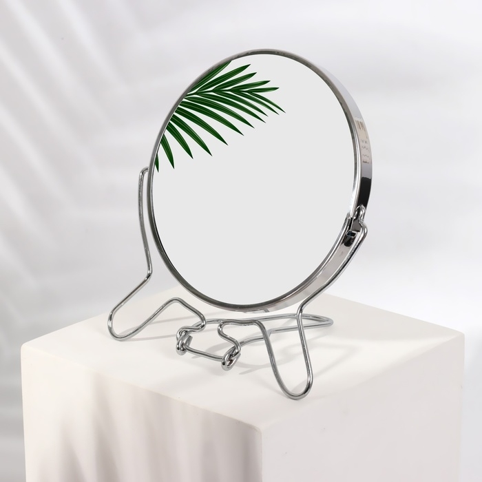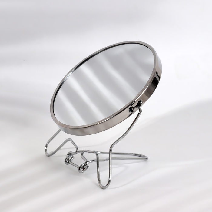 Зеркало на ножке «Круг», двустороннее, с увеличением, d зеркальной поверхности 7,7 см, цвет серебристый