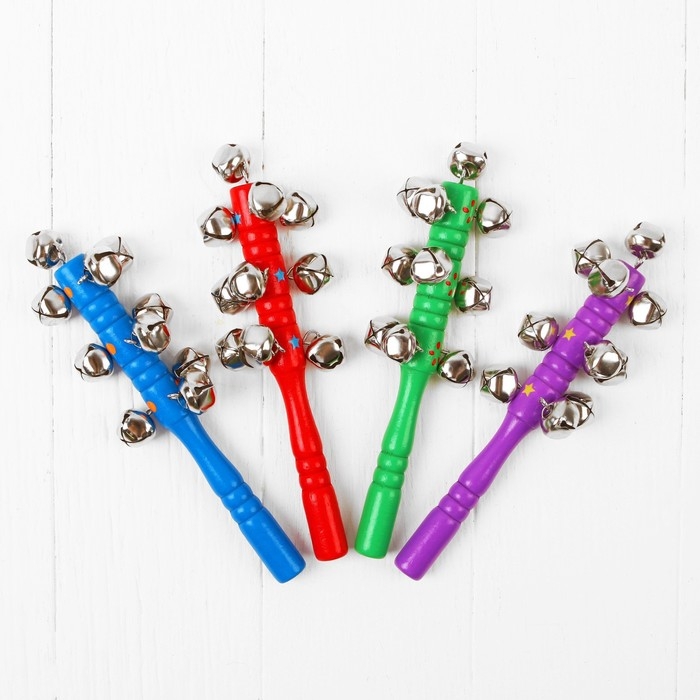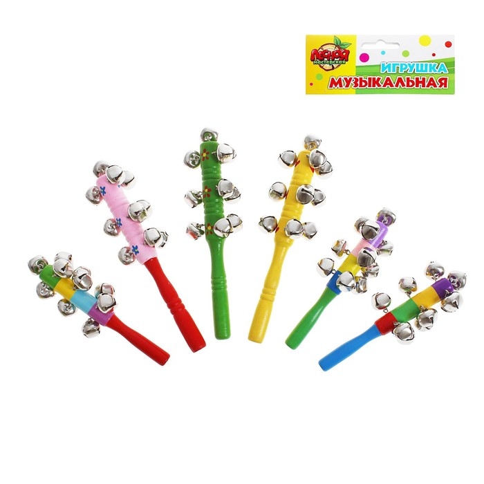 Погремушка с колокольчиками и ручкой, цвета МИКС