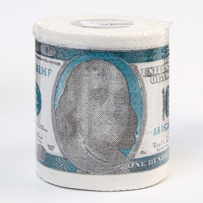 Сувенирная туалетная бумага "100 долларов", стандарт 10х10,5х10 см