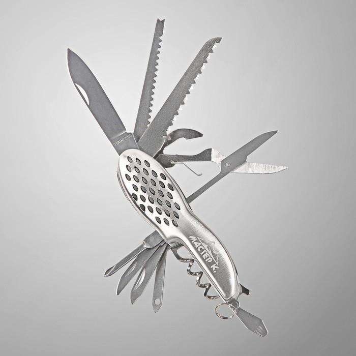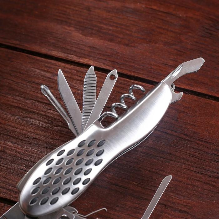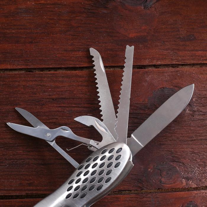 Нож швейцарский "Походный" 12в1 рукоять перфорированная