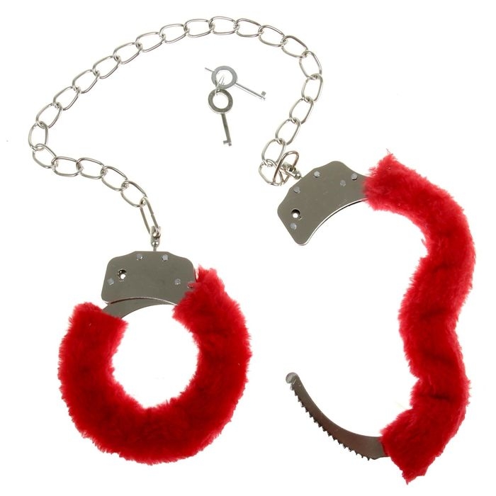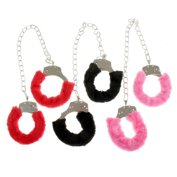 Наручники с мехом, на цепочке, цвета МИКС