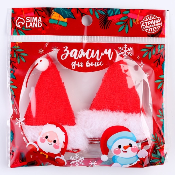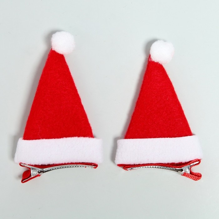 Карнавальный зажим «Колпачок», набор 2 шт сделает образ по-настоящему новогодним! Эффектный аксессуар в виде самой популярной зимней шапки за считанные секунды добавит причёске стиля и поможет создать карнавальный облик. Такая яркая деталь станет отличным решением для любых снежных вечеринок.