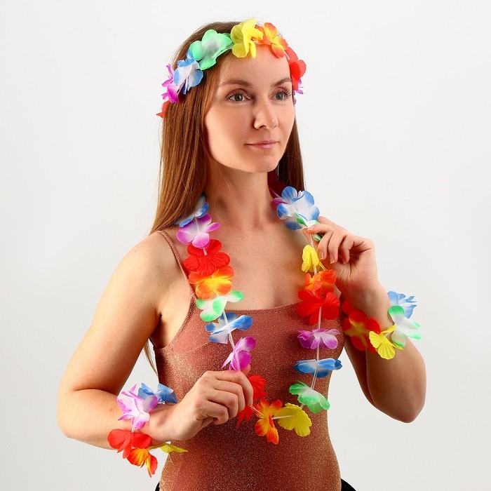 В любом образе важны детали. Гавайский набор внесёт необходимую южную нотку в ваш наряд. Этот красочный набор в одной цветовой гамме идеально подойдёт для гавайской вечеринки.