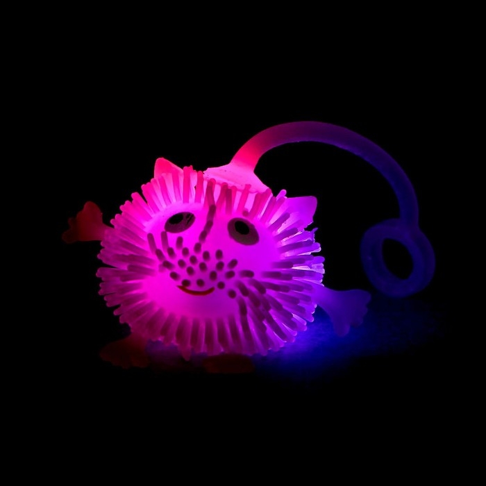 У озорного пушистика есть резиновая верёвочка, за которую удобно держать во время игры. А внутри такого ёжика находится шарик, он светится и мигает при ударе, что очень зрелищно выглядит в темноте. Эта детская игрушка завладеет вниманием малыша — в неё невозможно не влюбиться!