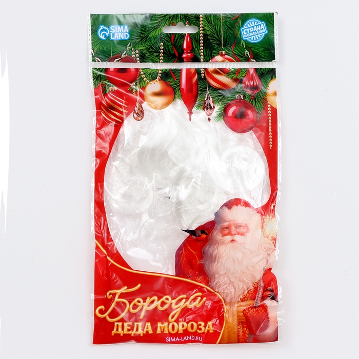 - Борода выполнена из высококачественных материалов. Она густая, имеет длину 18 см и естественный белый цвет, что придает образу максимальную реалистичность