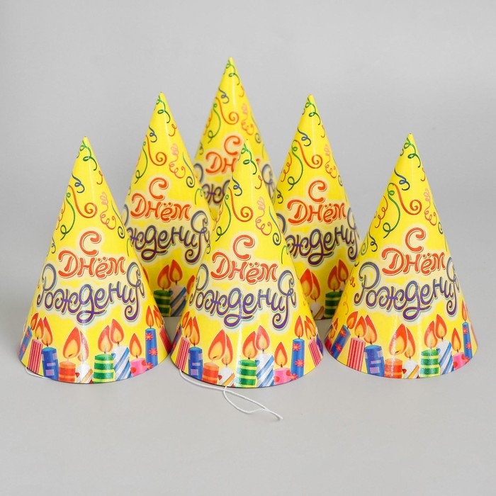 Бумажные колпаки «С днём рождения! Свечки», набор 6 шт., 16 см