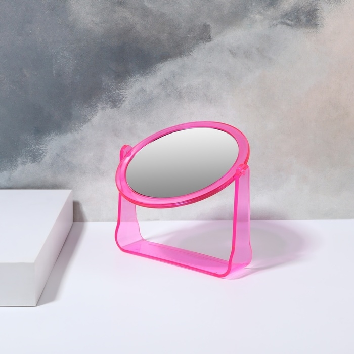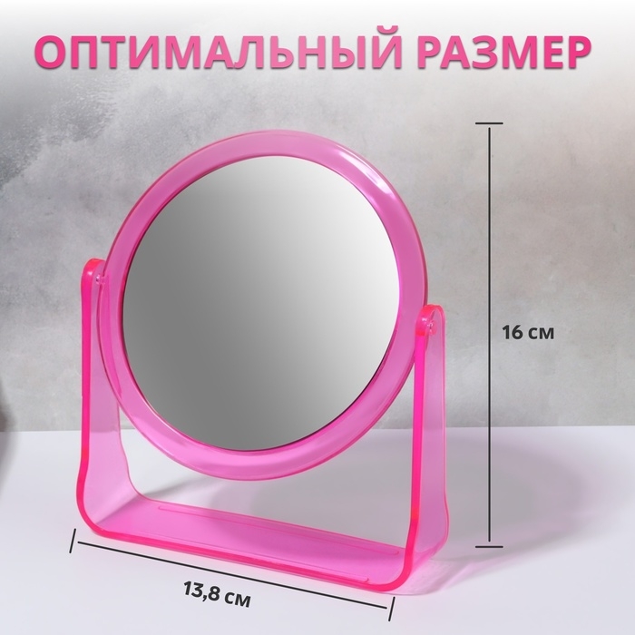 Зеркало настольное «Круг», двустороннее, с увеличением, d зеркальной поверхности 11 см, цвет розовый
