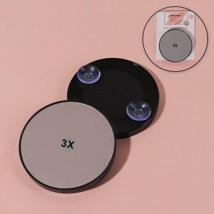 Зеркало макияжное, увеличение × 3, на присосках, d = 9 см, цвет чёрный
