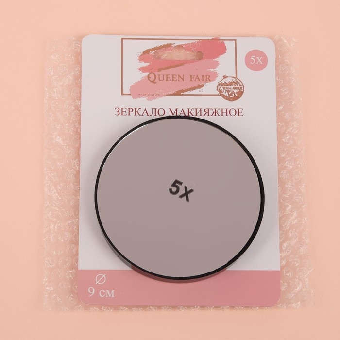 Зеркало макияжное, увеличение × 5, на присосках, d = 9 см, цвет чёрный