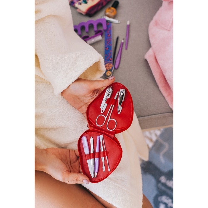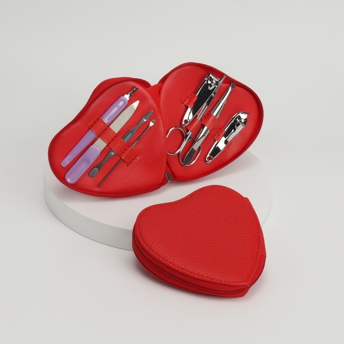 Набор маникюрный, 8 предметов, в футляре, цвет красный