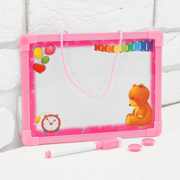 Доска для рисования магнитная с маркером-стиралкой и 2 магнитами, цвета МИКС