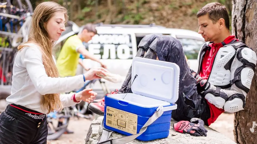 - Жесткая конструкция и ударопрочный корпус — можно использовать как стол и даже сидеть на контейнере