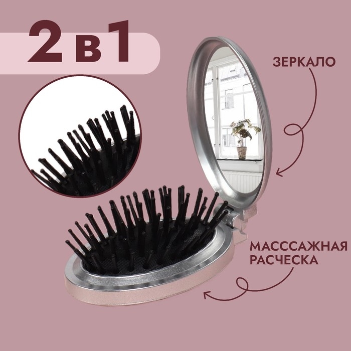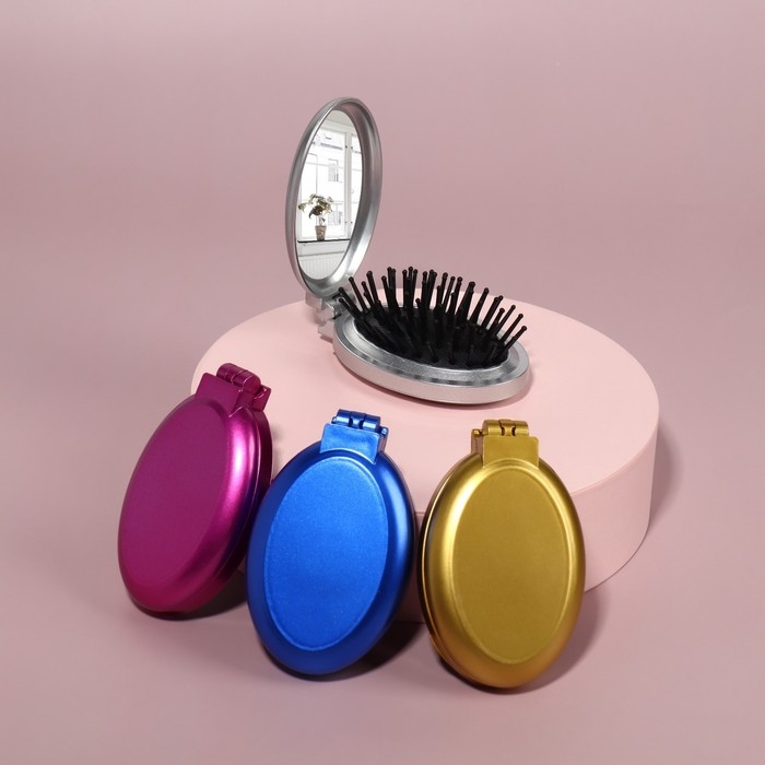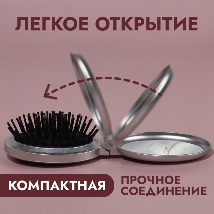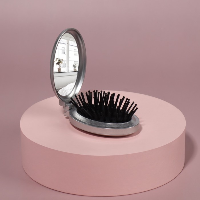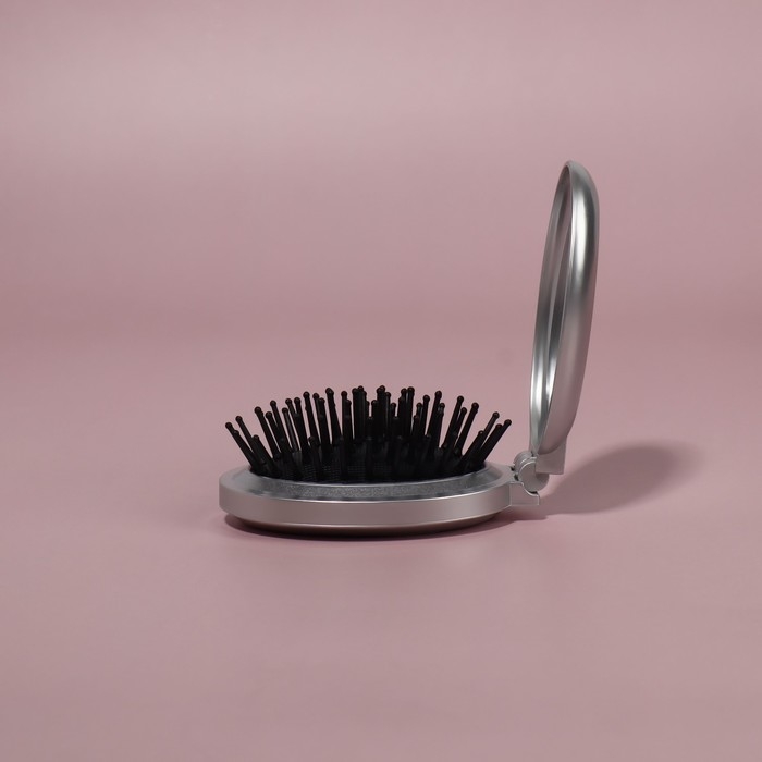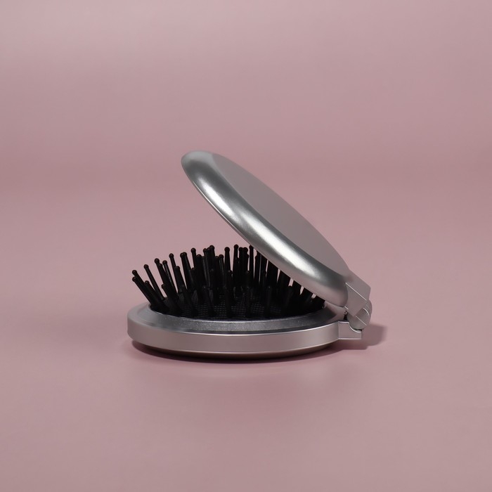 Расчёска массажная, складная, с зеркалом, d = 6 см, цвет МИКС