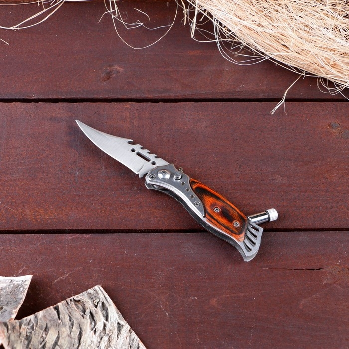 Нож оснащен кнопкой-фиксатором, которая позволит плотно зафиксировать инструмент в открытом и закрытом состоянии в единственном положении. Удобная рукоять не позволит выскользнуть ножу из рук в самый неподходящий момент при работе. А ещё нож складной "Пескарь" 16,6см, клинок 76мм, с фонариком оснащен удобным фонариком, который выручит вас в любой ситуации.