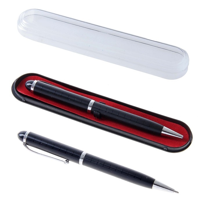 Ручка подарочная, шариковая "Бизнес" в пластиковом футляре, поворотная, чёрная с серебристыми вставками