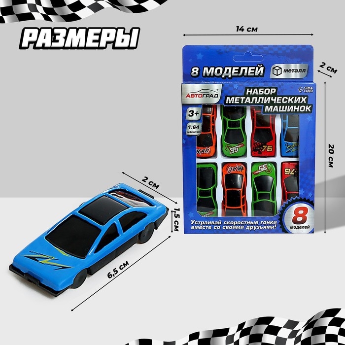 Размер одной машины: 6,5 × 2 × 1,5 см.
