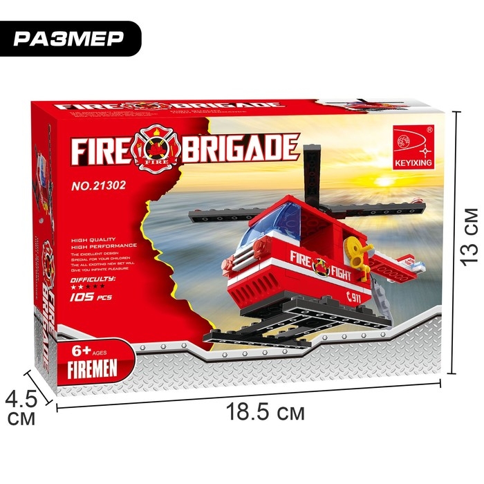 Конструктор Пожарная бригада «Вертолёт», 105 деталей