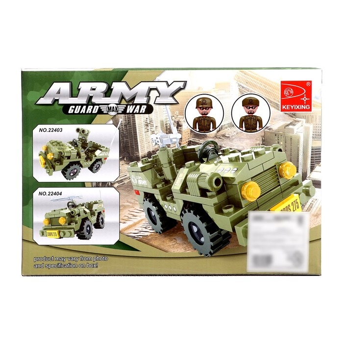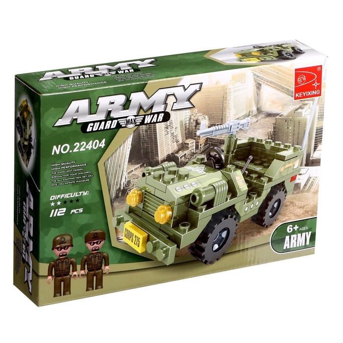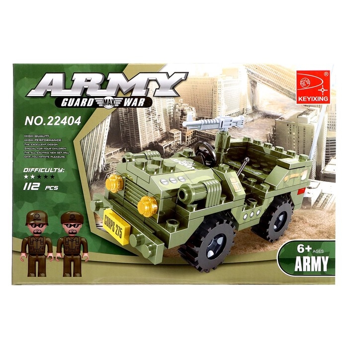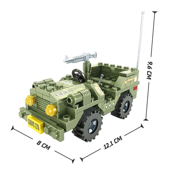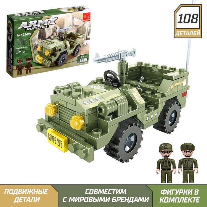 - Набор содержит 108 деталей и позволяет сконструировать боевую машину и фигурки солдат с оружием.