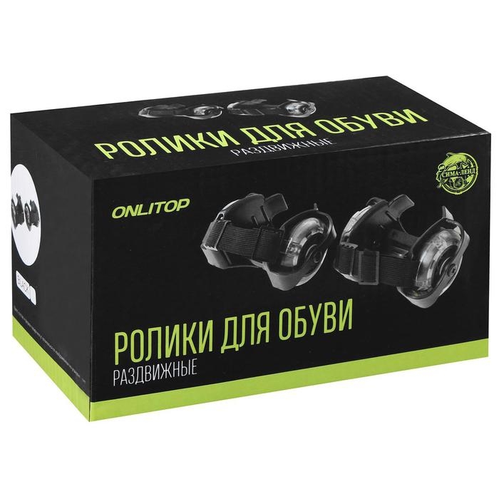 Ролики для обуви раздвижные ONLITOP, светящиеся колёса РVC 70 мм, ширина 6-10 см, до 70 кг, цвет чёрный