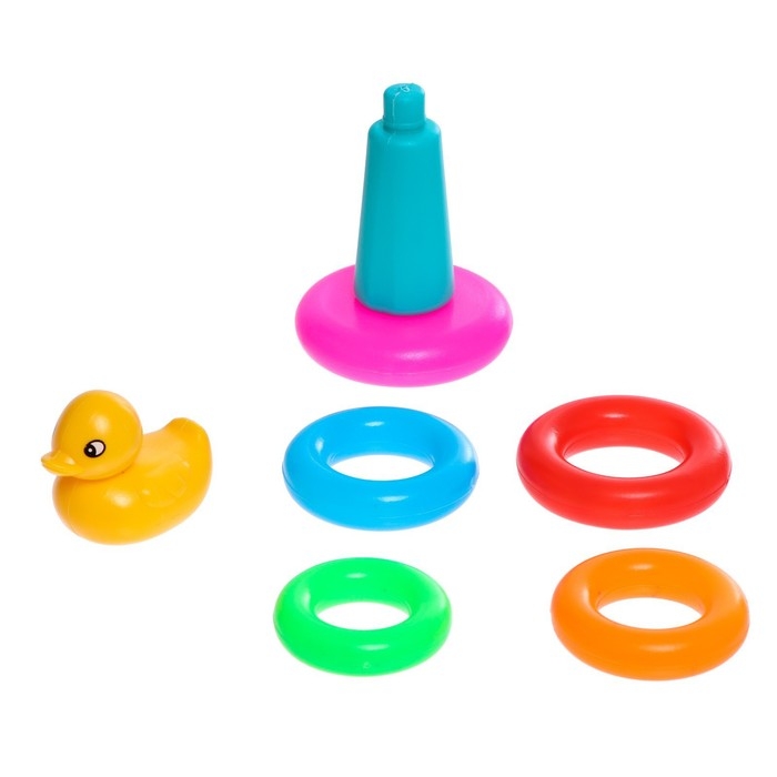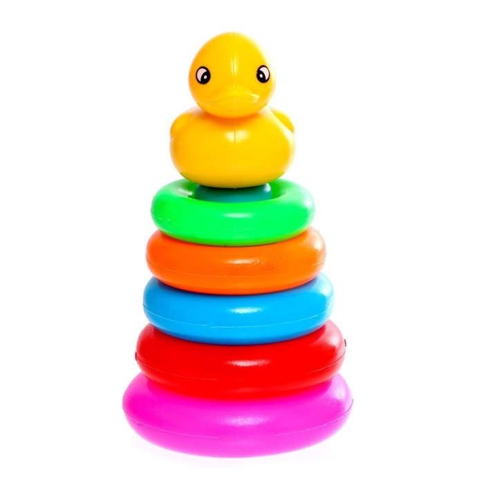 Пирамида «Уточка», 5 колец ― одна из первых логических игрушек крохи. С её помощью у ребёнка формируется представление о цветах и размерах предметов, развиваются базовые счётные навыки. Малыш учится сравнивать элементы по общему признаку и собирать их в одно целое.