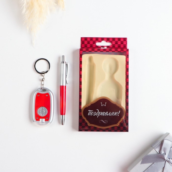 Набор подарочный 2в1 (ручка, фонарик красный)