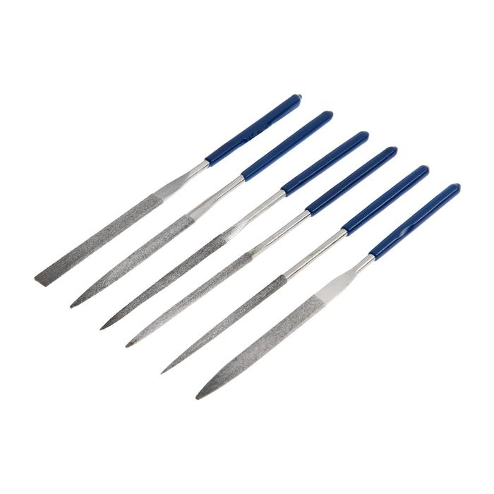 Набор надфилей алмазных ТУНДРА, обрезиненные рукоятки, 70 х 160 х 4 мм, 6 шт.