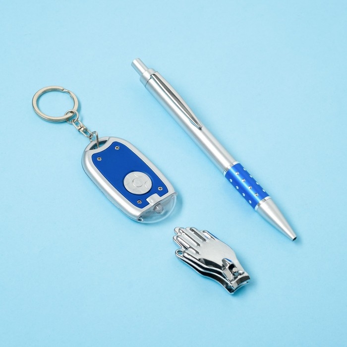 Набор подарочный 3в1 (ручка, кусачки, фонарик синий) микс