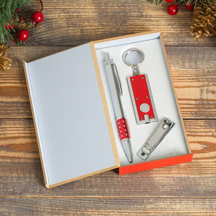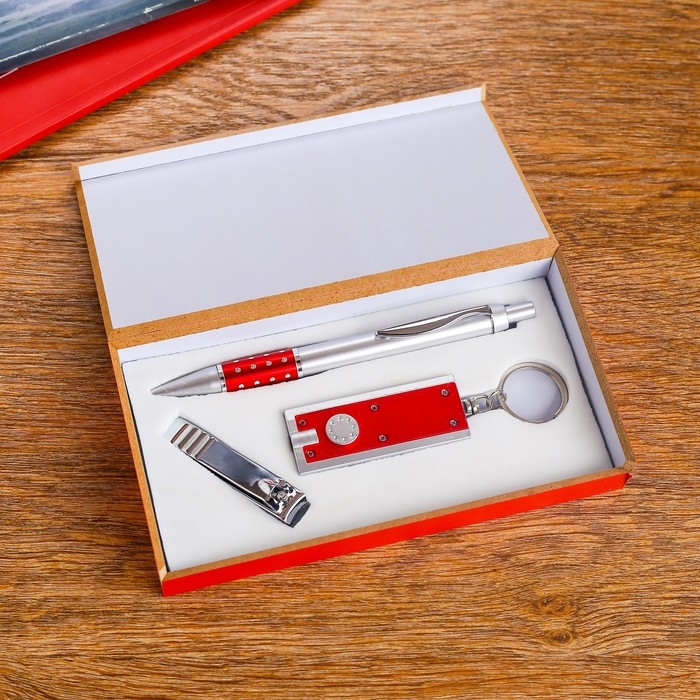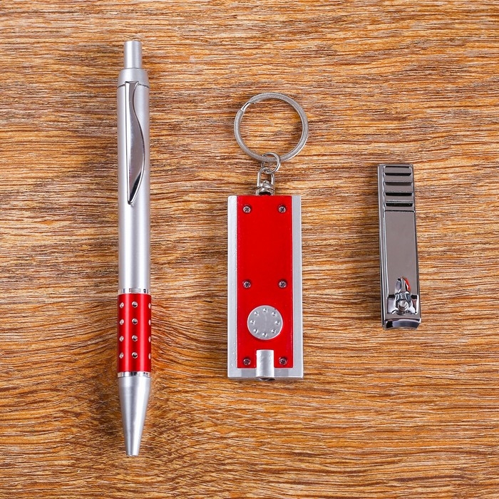 Набор подарочный 3в1 (ручка, кусачки, фонарик красный)