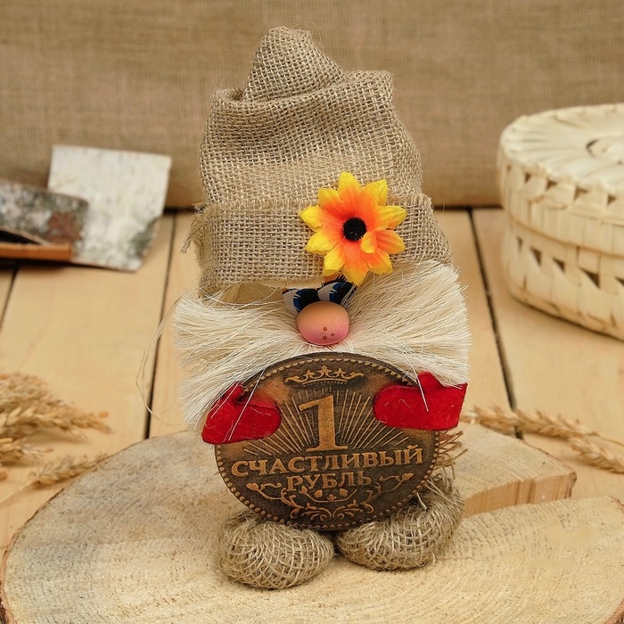 Оберег-домовой "Василек в льняном колпаке, с рублем", 18х11х10см, микс