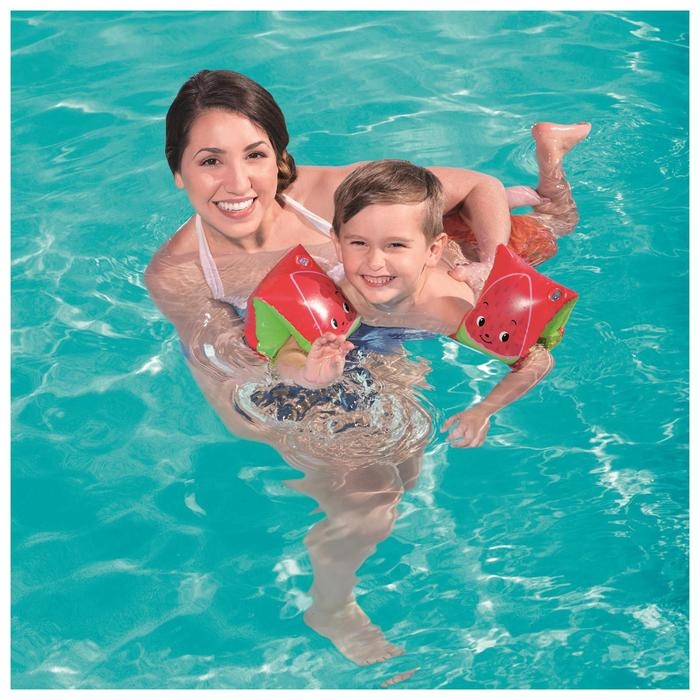 Ваш малыш только учится плавать? Достичь успехов в его начинаниях помогут надувные нарукавники. С ними ребёнок сможет уверенно держаться на плаву и избавится от боязни воды. Яркие нарукавники изготовлены из ПВХ — прочного материала, устойчивого к повреждениям и солнечным лучам. Даже при частом использовании они прослужат не один сезон.