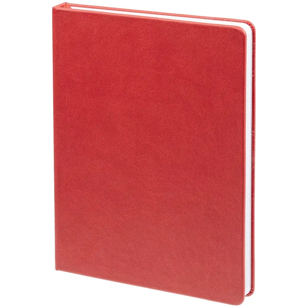 Ежедневник с твердой обложкой. Выполнен из материала Latte, красный, дополнен ляссе в цвет обложки.