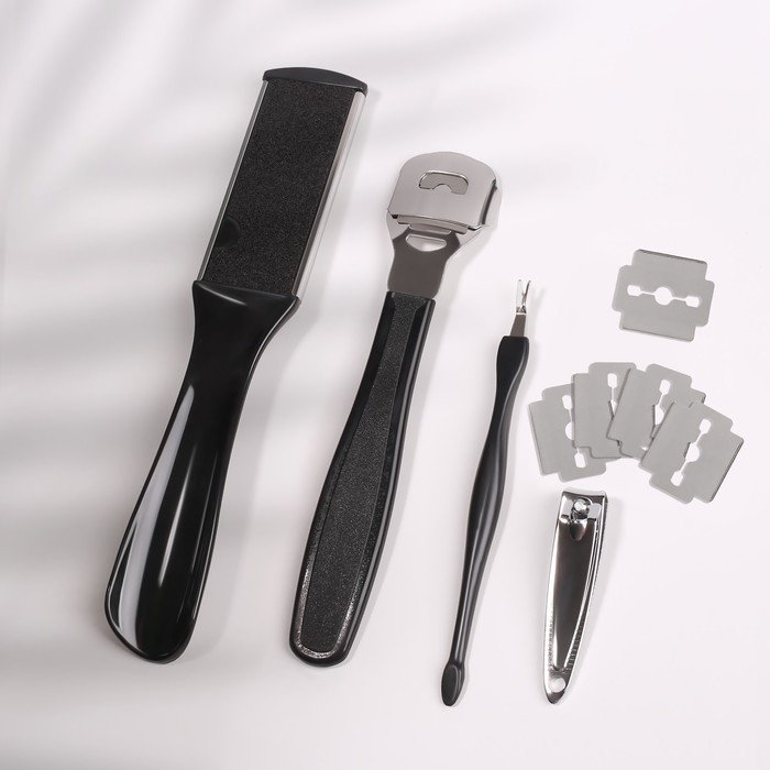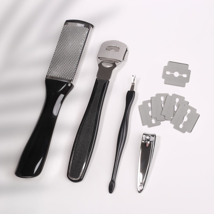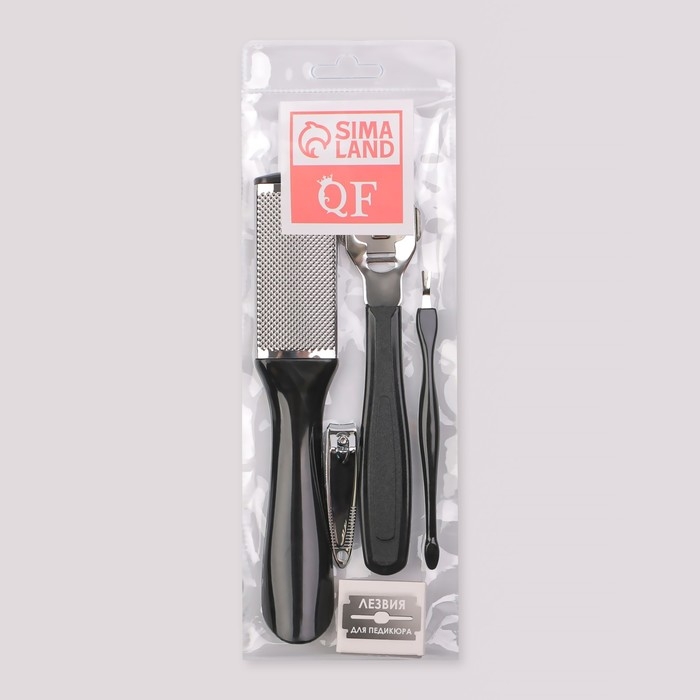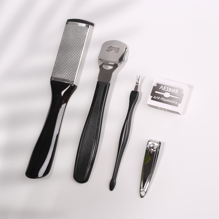 Набор для педикюра, 5 предметов, на блистере, цвет чёрный