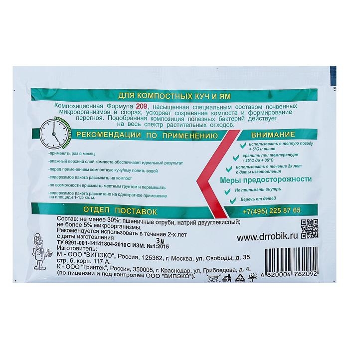 Средство для ускорения созревания компоста Доктор Робик 209, 60 гр.