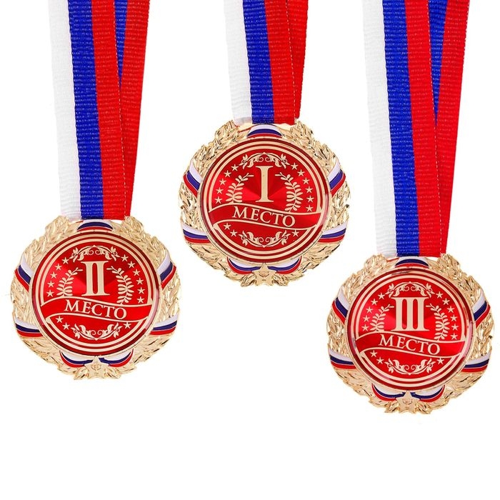 Медаль призовая 013, d= 5 см. 1 место, триколор. Цвет золото. С лентой