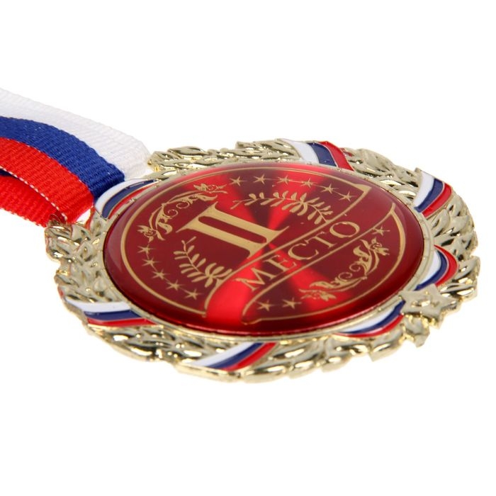 Медаль призовая 071, 2 место. Цвет серебро. С лентой. 4,3 х 4,6 см