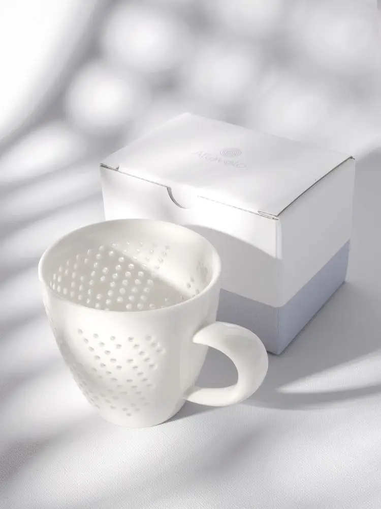 Чашка Coralli Rio — легкая, словно светящаяся изнутри посуда с легендарным узором «рисовое зерно». Благодаря тонкому слою прозрачной глазури кружка выглядит кружевной и ажурной, при этом напиток гарантированно остается внутри.