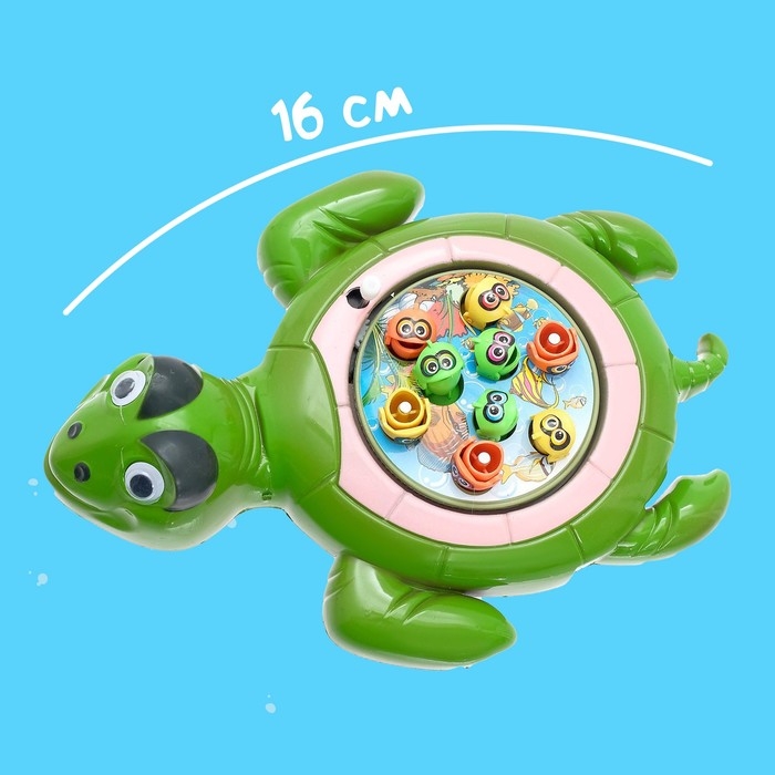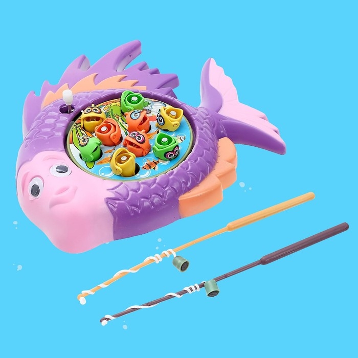 Чтобы начать, заведите игрушку. Фигурки станут крутиться и перемещаться с места на место. Поймайте рыбку магнитной удочкой и быстро поднимите её вверх, стараясь не упустить добычу.